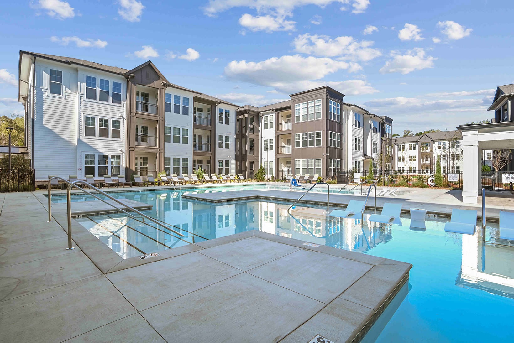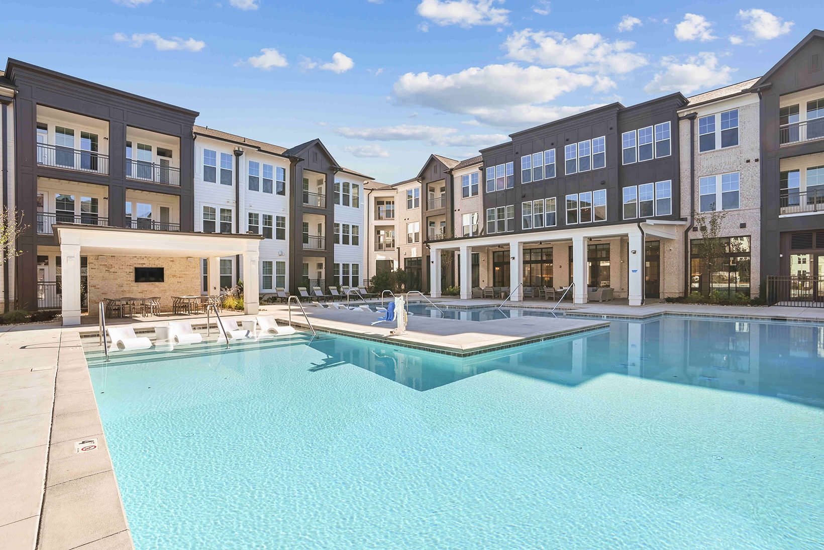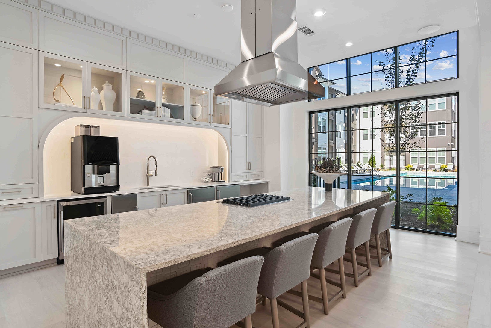 Our photo gallery gives you a glimpse into the elevated living experience here at Connery. Be delighted over elegant 1 and 2 bedroom apartment features, from a chef's kitchen with shaker-style wooden cabinetry and upscale finishes, stainless steel appliances, and granite countertops to private balconies with sweeping wooded views. Fall in love with fabulous amenities including a private dining room, social lounge to get together with your neighbors, tranquil swimming pool with sun-shelf loungers, convenient sauna and spa room to relax and unwind - the list goes on to enjoy yourself and indulge in what life has to offer.
