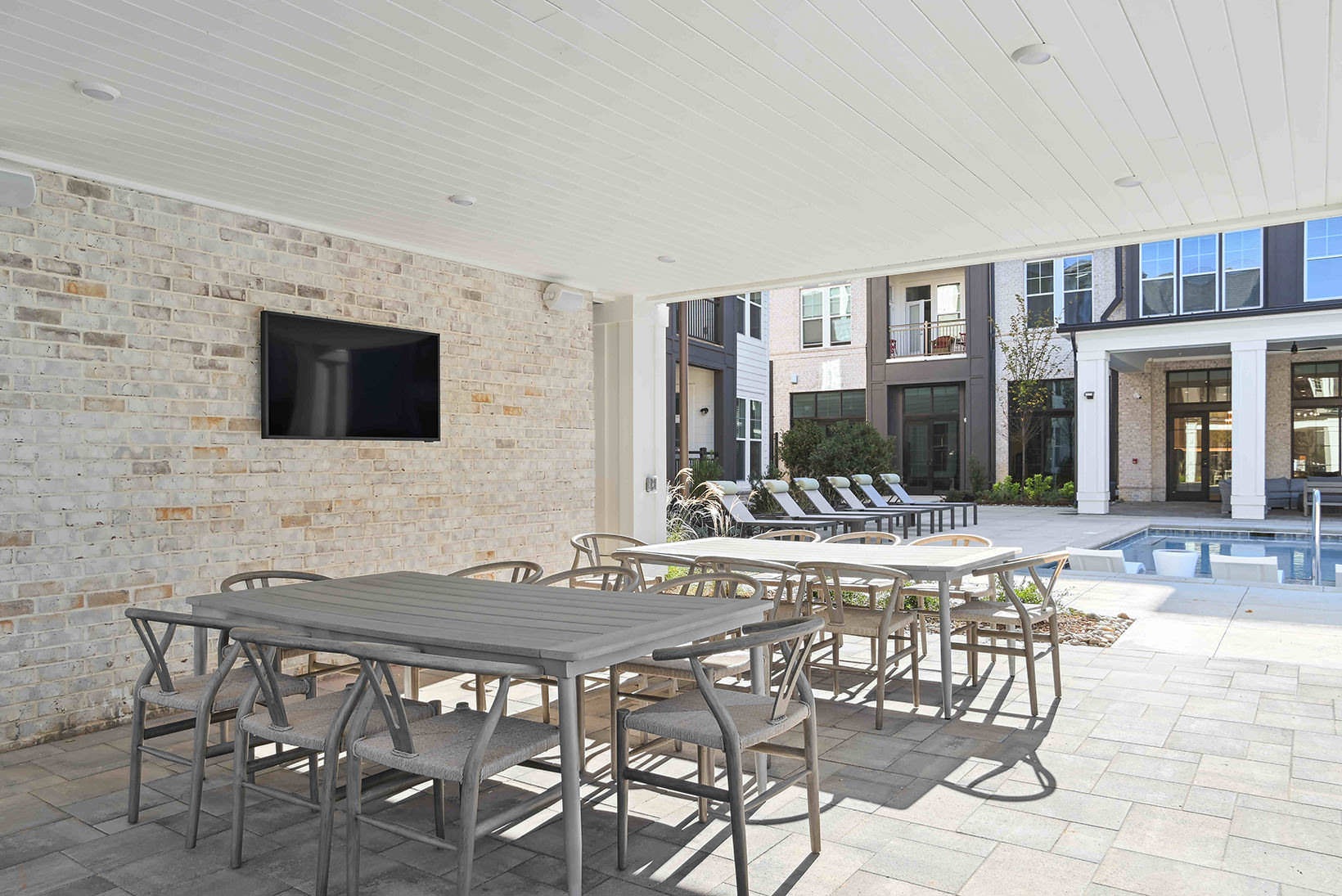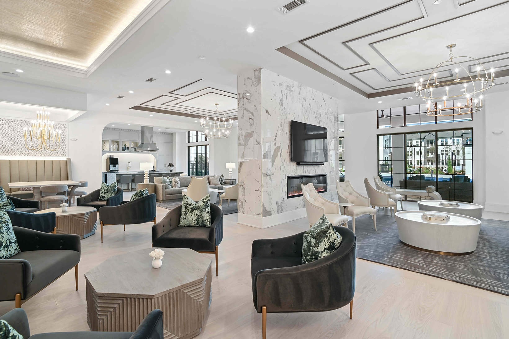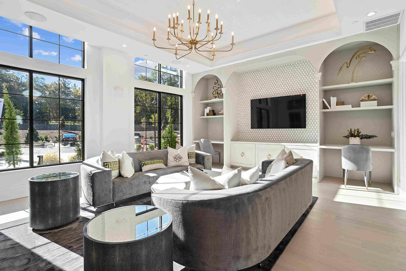 Our photo gallery gives you a glimpse into the elevated living experience here at Connery. Be delighted over elegant 1 and 2 bedroom apartment features, from a chef's kitchen with shaker-style wooden cabinetry and upscale finishes, stainless steel appliances, and granite countertops to private balconies with sweeping wooded views. Fall in love with fabulous amenities including a private dining room, social lounge to get together with your neighbors, tranquil swimming pool with sun-shelf loungers, convenient sauna and spa room to relax and unwind - the list goes on to enjoy yourself and indulge in what life has to offer.